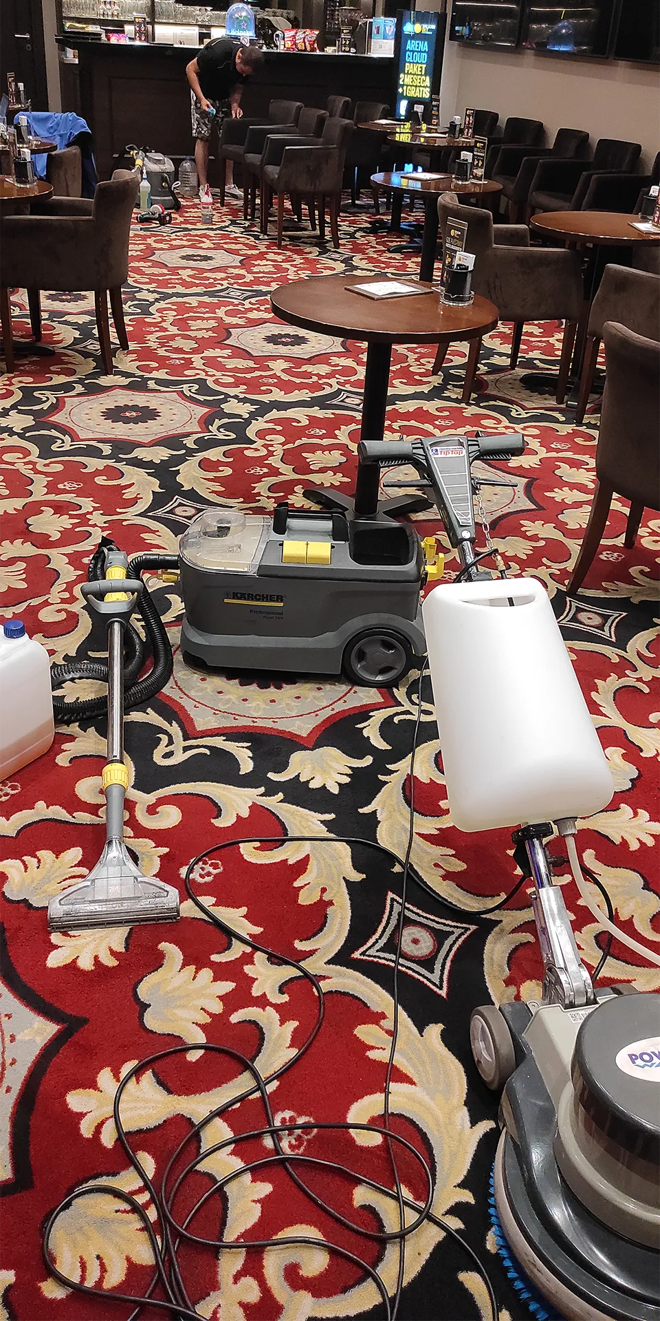 - Mokro usisavanje: Uz pomoć specijalizovanih mašina, sve nečistoće se ekstrahuju i vrši se temeljno ispiranje itisona.